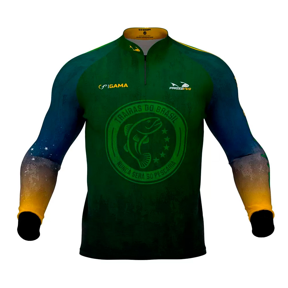 Camisa sublimada Presa Viva Tecnologia Dry, que proporciona máximo conformo térmico durante a atividade, modelo raglã manga longa, fechamento com zíper.