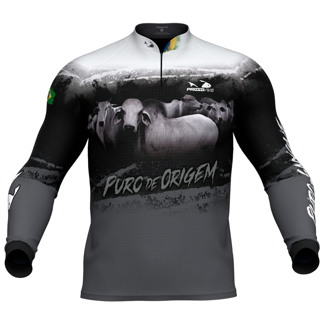 Camisa sublimada Presa Viva Tecnologia Dry, que proporciona máximo conformo térmico durante a atividade, modelo raglã manga longa, fechamento com zíper.